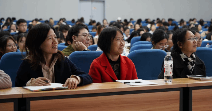 王传闻介绍了吟诵的起源,并结合当今不同国家及地区的吟诵特点,从何为吟诵、为何吟诵及如何吟诵三个方面展开讲解。在讲解过程中,王传闻以多篇经典古诗文为例,用不同的吟诵调进行了示范展示,并带领在场师生开口吟诵,直观感受吟诵的发音特点、节奏韵律和吟诵方式。王传闻的讲解生动形象、幽默风趣,让现场师生在欢乐积极的氛围当中学习吟诵的技巧,激发了大家对学习吟诵的浓厚兴趣。