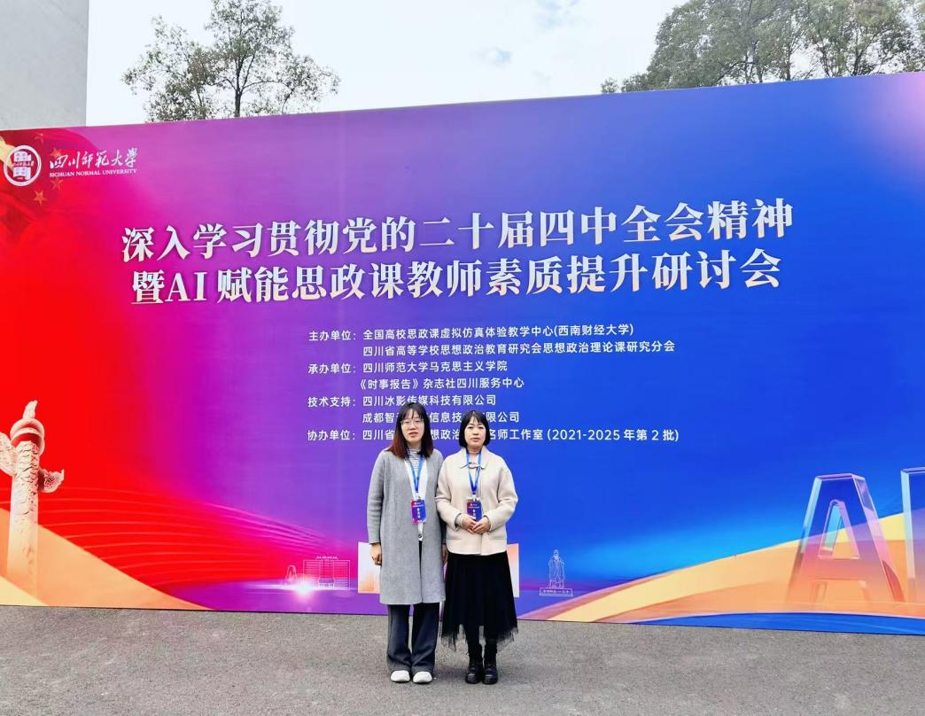 11月15日,学习贯彻党的二十届四中全会精神暨AI赋能思政课教师素质提升研讨会在四川师范大学(狮子山校区)举行,学院教师余利利、李晓容参加了此次会议。