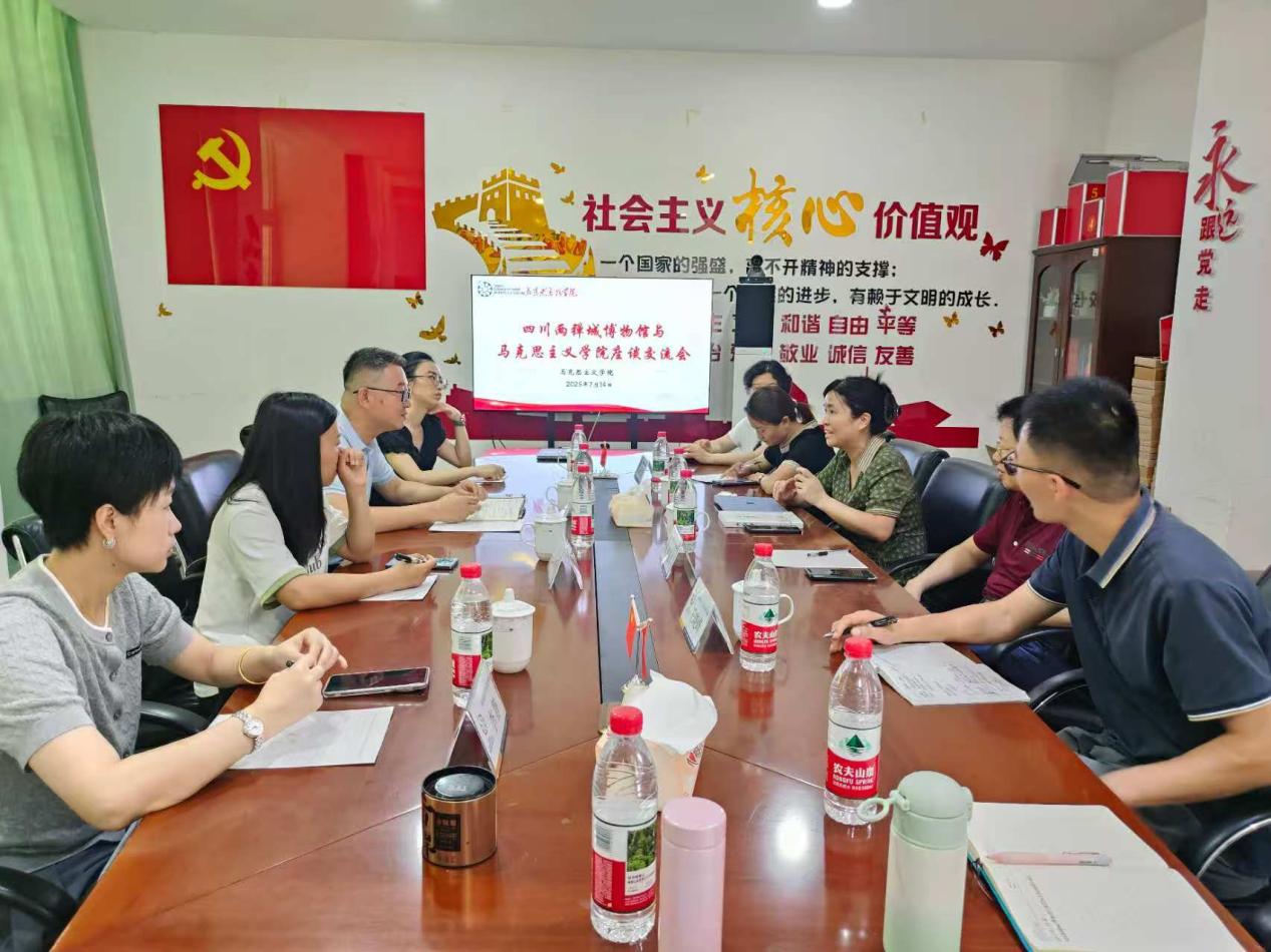 7月14日上午,四川省两弹城博物馆馆长刘风才一行来学院调研交流,博物馆工作人员张倩、李静、张骞予随行到访。学院院长丁灵芝、特聘教授孟建伟、副院长张丽君等教师参与此次交流活动。座谈会现场双方就如何延续和深化“大思政课”实践教学基地共建工作进行座谈交流。刘风才从“大思政课”内容建设、协同育人、宣传推广等方面进行交流。他谈到,在内容建...