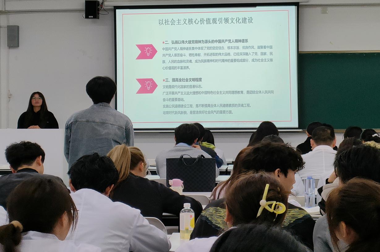 11月27日,习近平新时代中国特色社会主义思想概论课程文丽老师组织学生开展“建设社会主义文化强国”主题实践活动。学生以小组为单位,选择不同题目,采用不同方式进行课堂展示。有的小组以“文化繁荣发展的重要意义”为题,以“黑神话·悟空”“唐宫夜宴”等案例为切入点,采用趣味问答形式,探讨了文化繁荣对实现中华民族伟大复兴的重要性。有的小组以...
